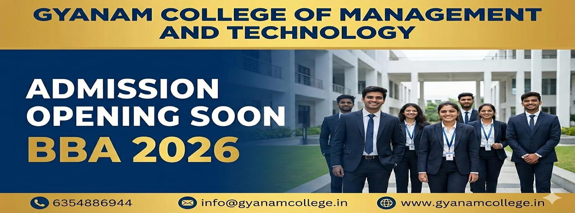 Gyanam College of Management and Technology is a premier institution committed to delivering quality education in the fields of management and technology. The college aims to develop skilled professionals by combining academic rigor with practical learning and industry-oriented training. Emphasizing innovation, discipline, and ethical values, the institution creates an environment that supports intellectual growth and personal development.